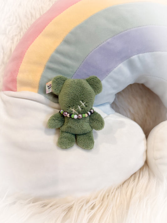 bear that literally fits in the palm of your hand!! I am over the moon on how CUTE this tiny sized bear is and the necklace it is adorned by the beads are extra special and the pumpkin charm got me all giddy! It is mind blowing how can one make something as detailed as this in