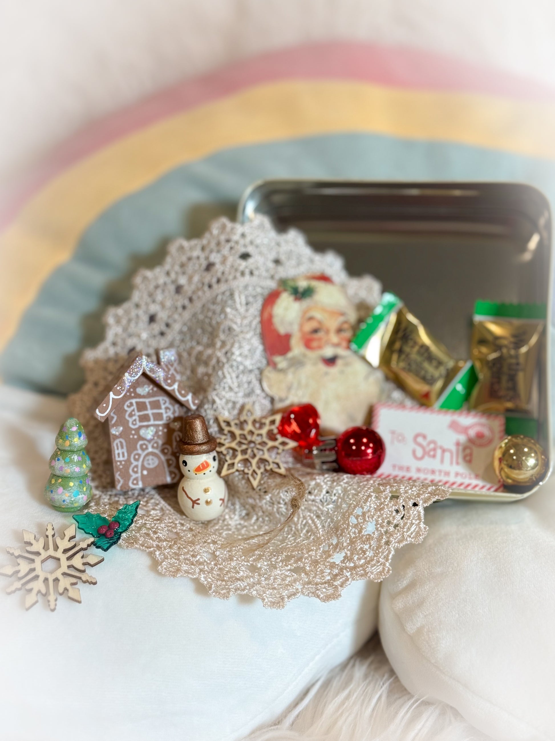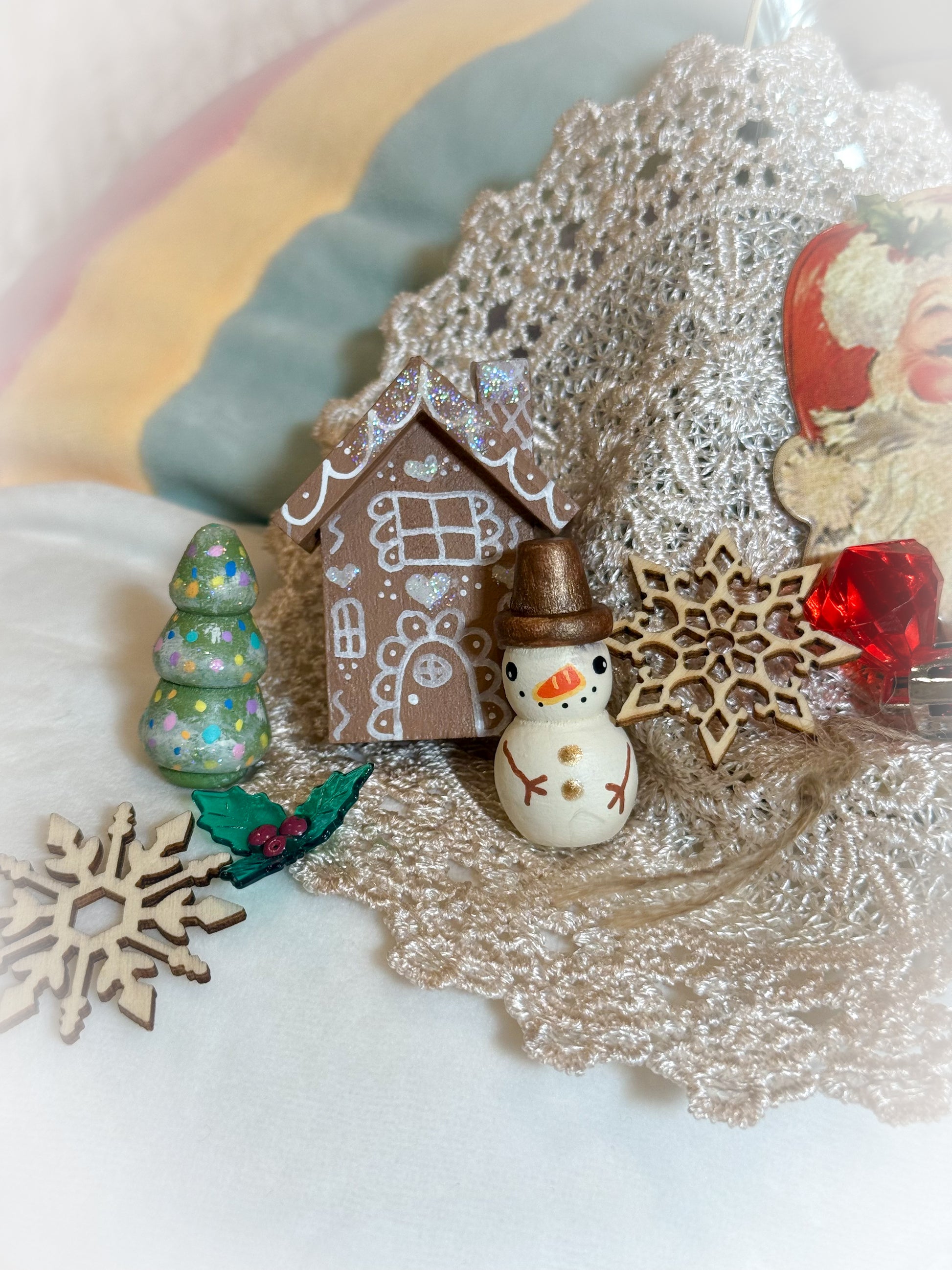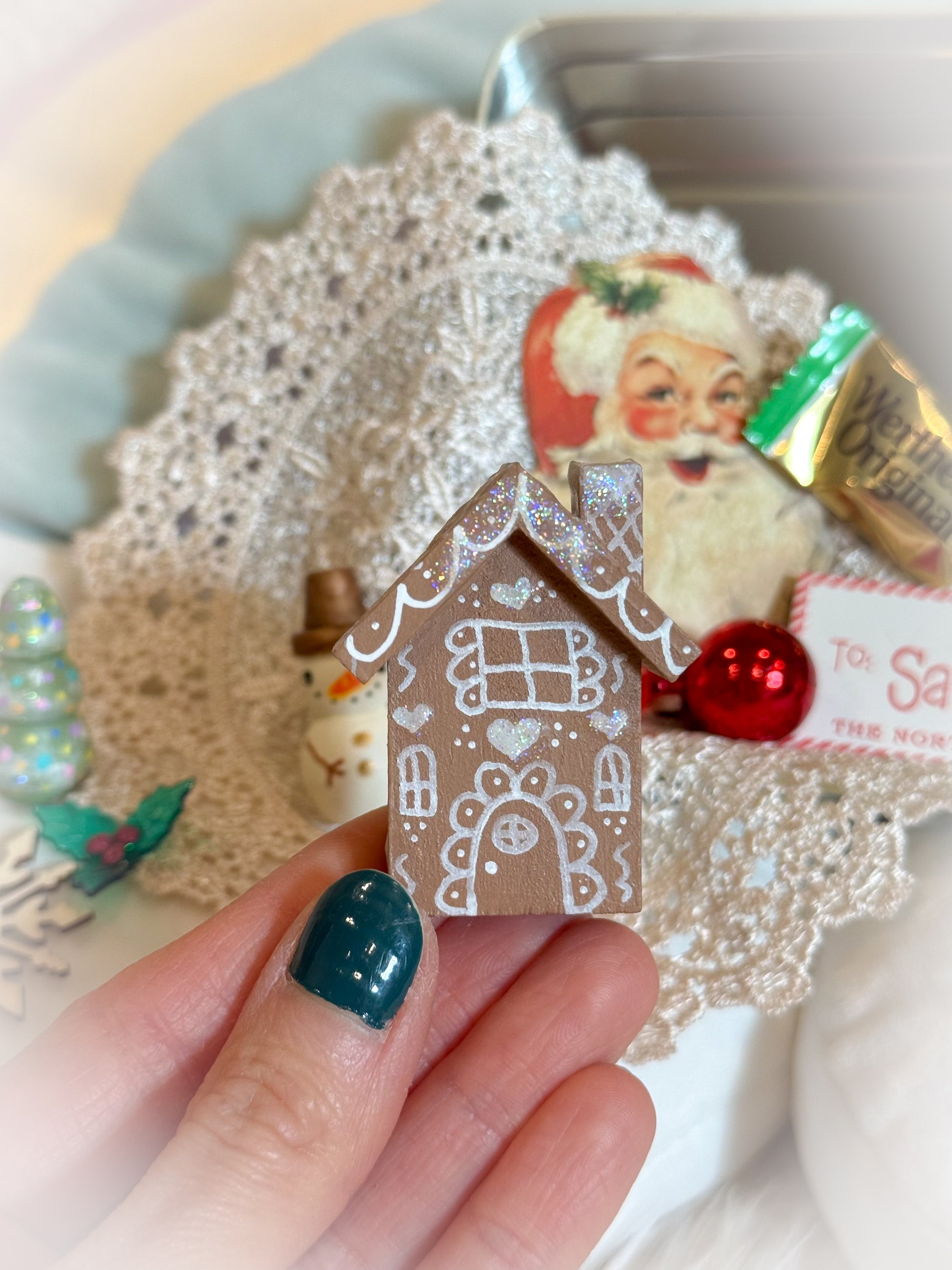 Tiny Teddi Gingi is a brand new design for 2025, he's weighted with glass & comes inside a beautiful vintage collectors tin chalked full of holiday goodies. Each special Teddi Gingi is featured in a beautiful vintage cookie tin that's stuffed full of fun holiday items to keep him busy all season long. Use him as a display piece or take him on all your adventures via your pocket!!