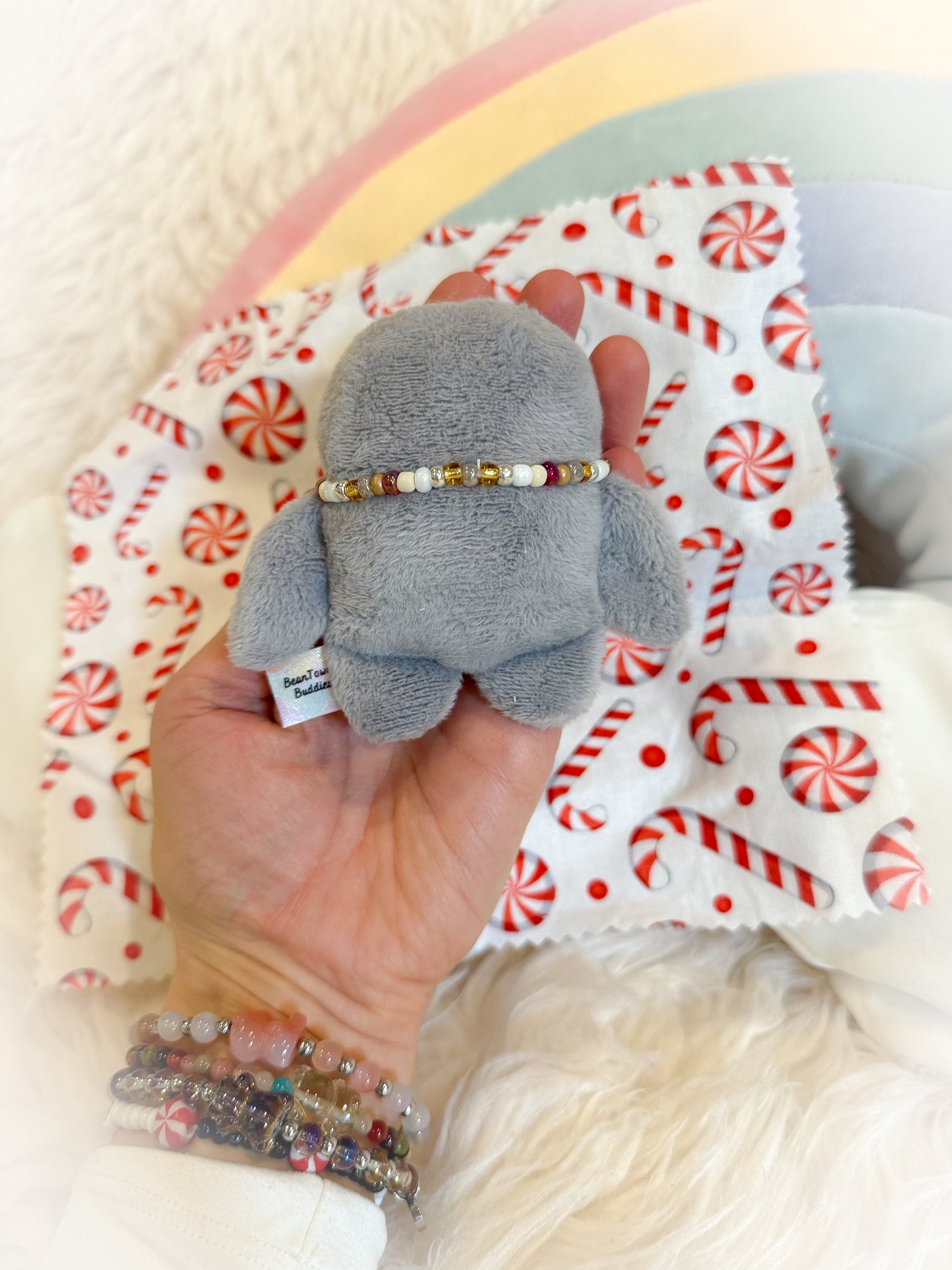 This new cutie has a glass tummy filling that is both adorable and is stress relieving to play with. Simply take him on your adventures and pull him out of your pocket, purse, tote, backpack, or diaper bag when you need little calm in your day. His glass tummy is so fun to squish and fidget with and the best part is it's a silent fidget vs the loud pellet crunch of most other anxiety relief plushies. He's sweet and discreet & ready to find a cozy pocket to hide in all winter long.