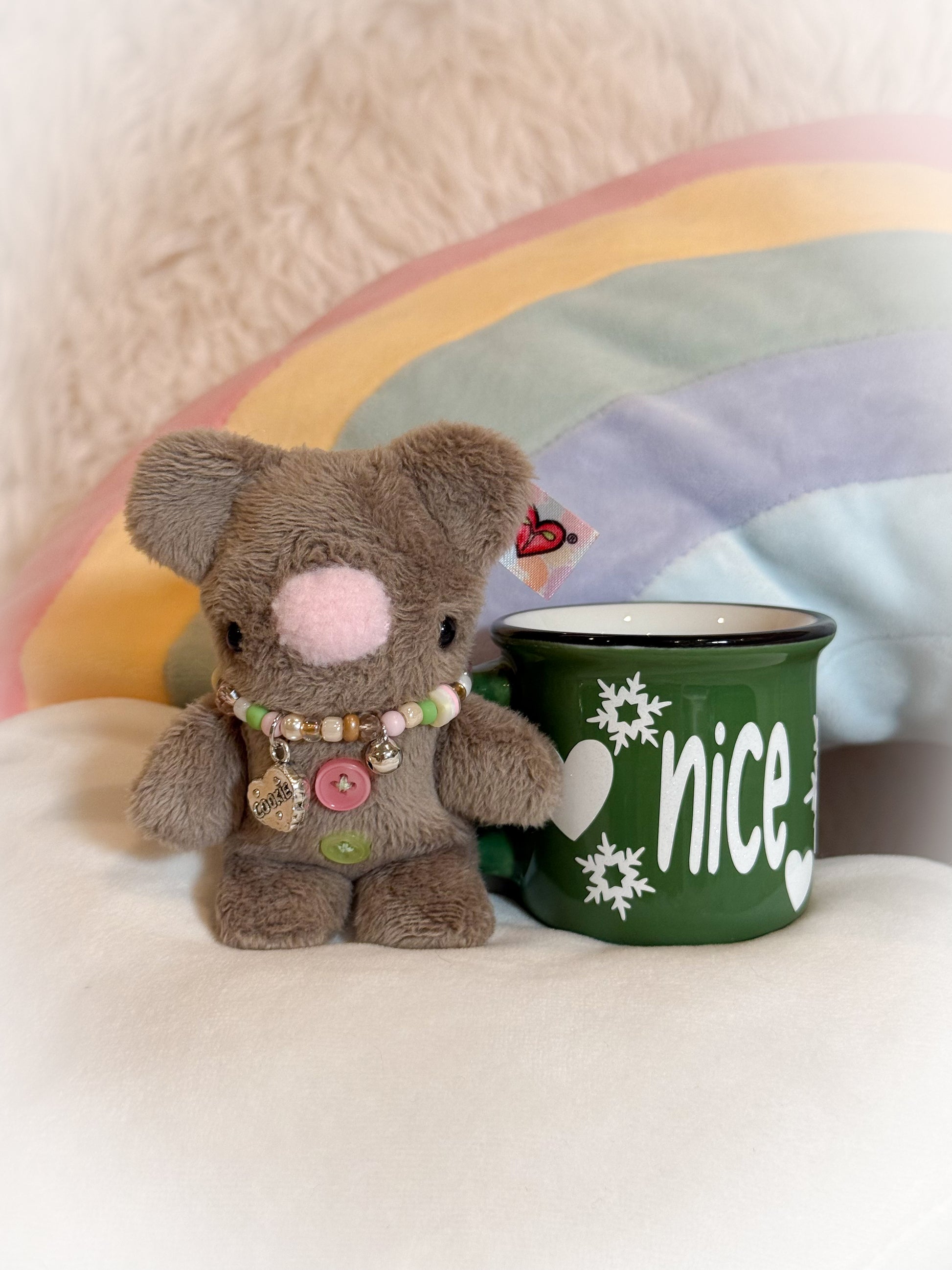 Tiny Teddi Gingi is a brand new design for 2025, he's weighted with glass & comes inside a beautiful collectors mug. Clearly Teddi Gingi is on the nice list so thankfully Santa will be visiting him this year!! The adorable tiny mug he's inside of is ooak and not intended for use with food or drinks, it is 100% for decoration only, and is also hand wash only. You can use Tiny Gingi as a display piece or take him on all your adventures via your pocket!!