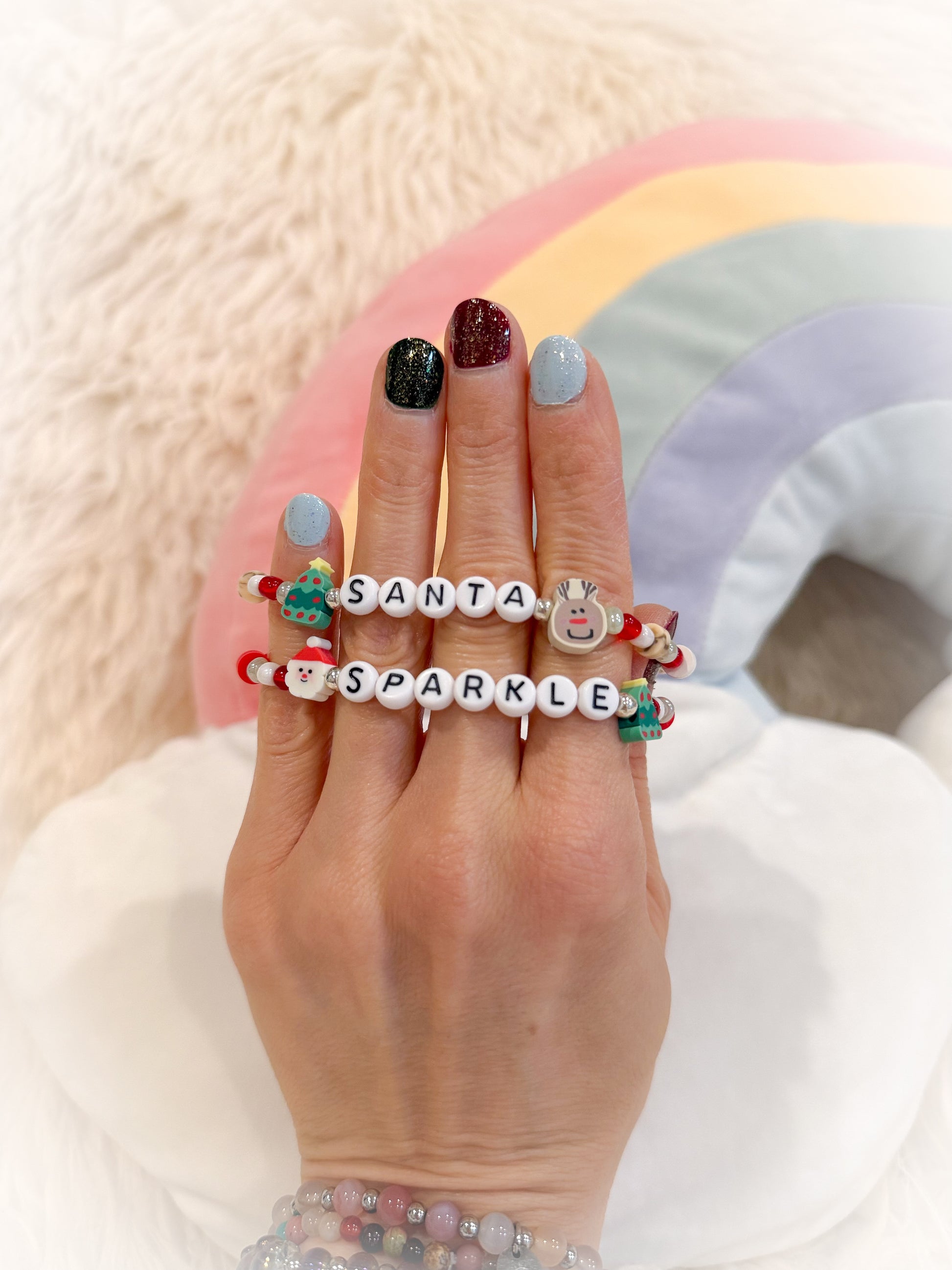 Let's dress up your style this season with these adorable holiday beaded bracelets!! They read out "SPARKLE SANTA" when worn together. Keep on and gift the other to your bestie or keep them both for you. Either way they are sure to add a little jazz to your accessories this season.