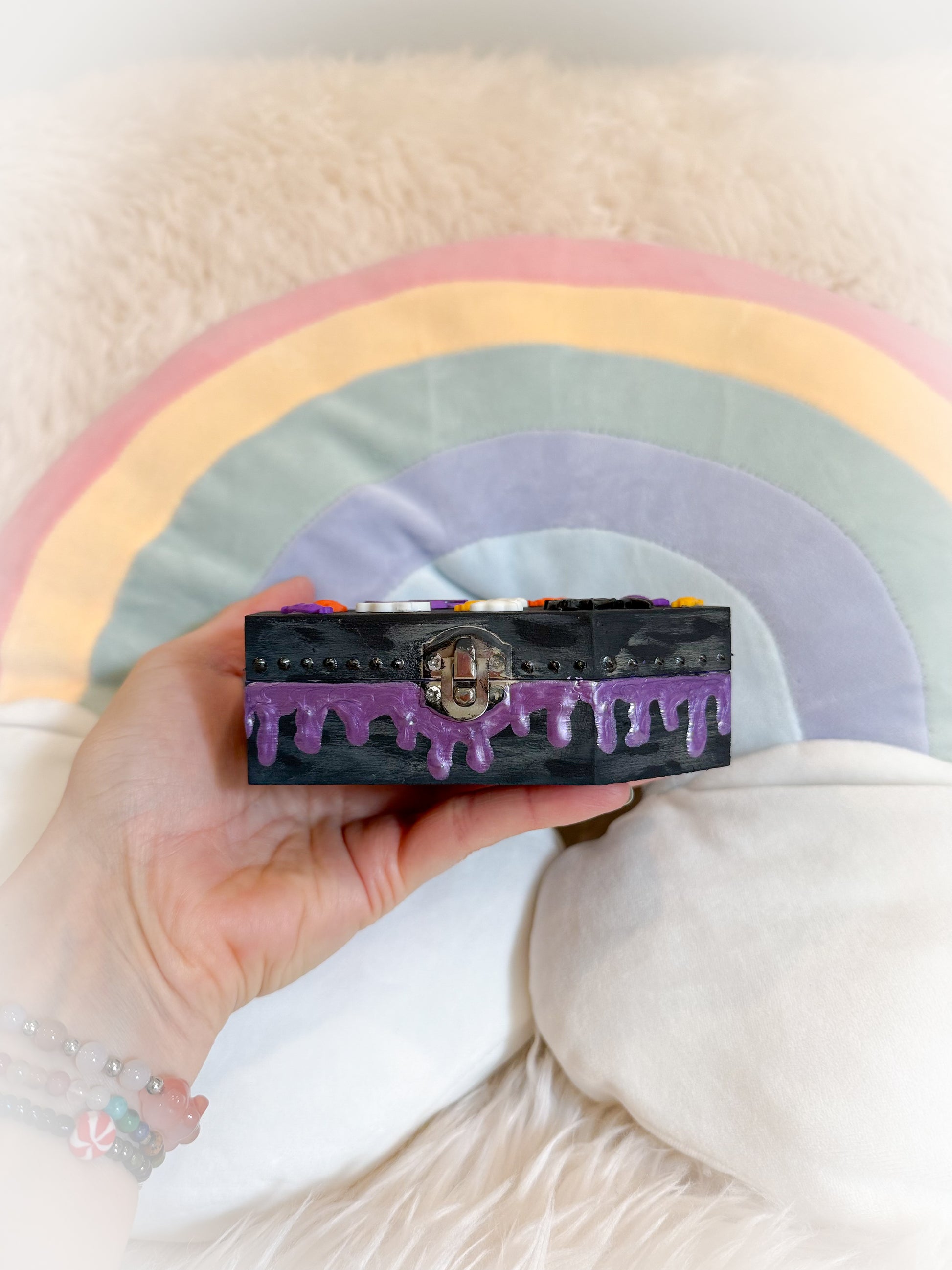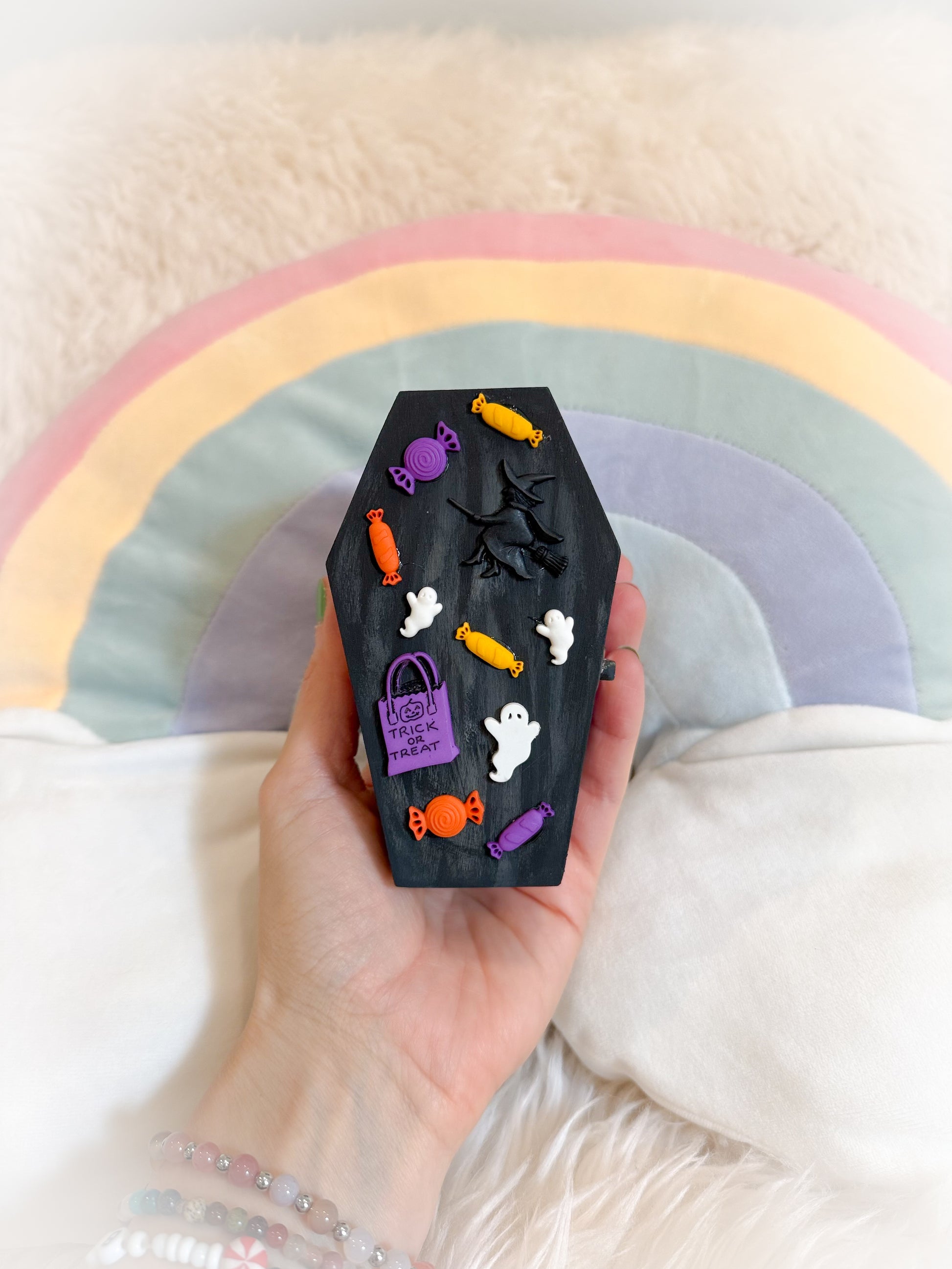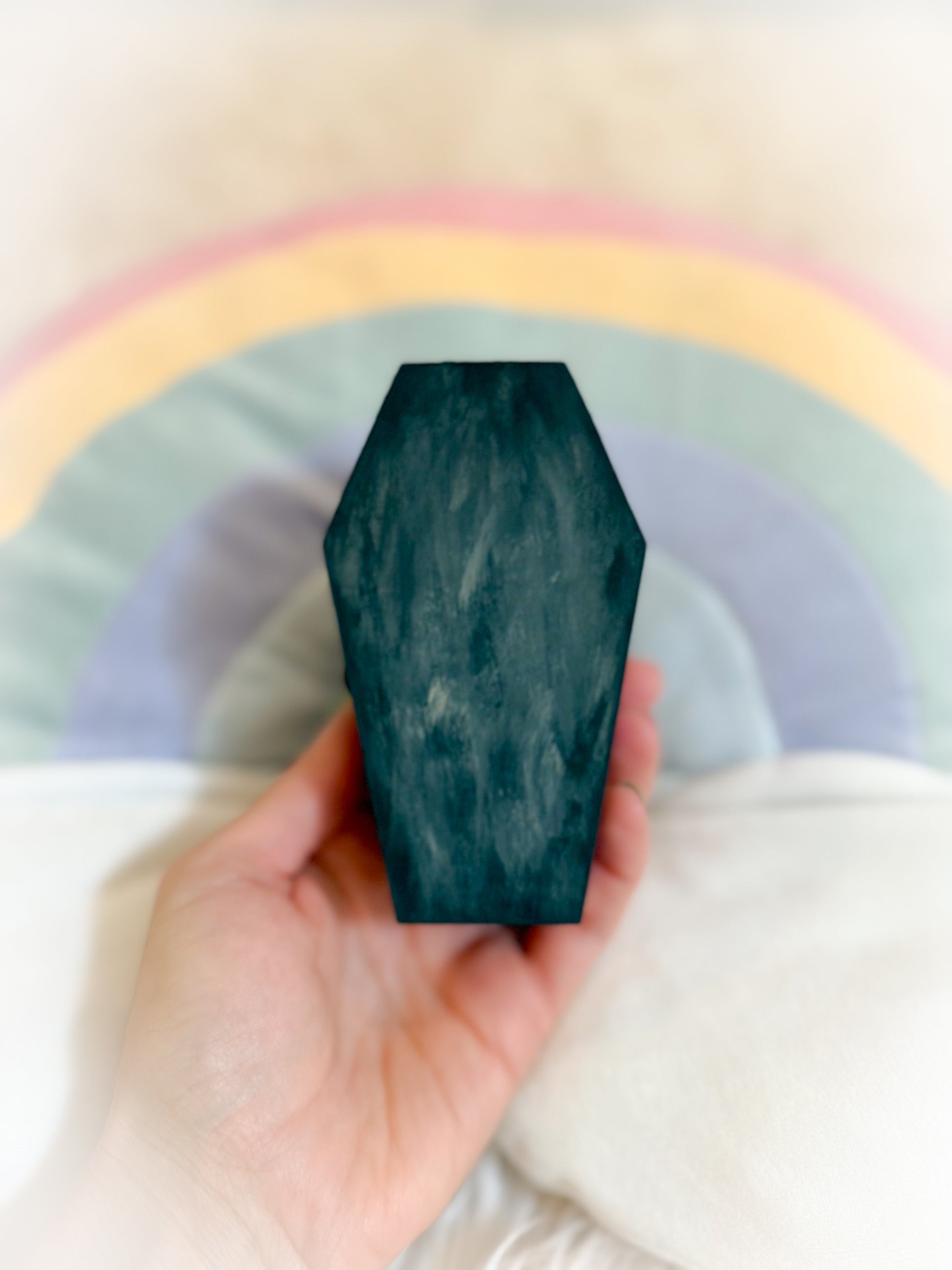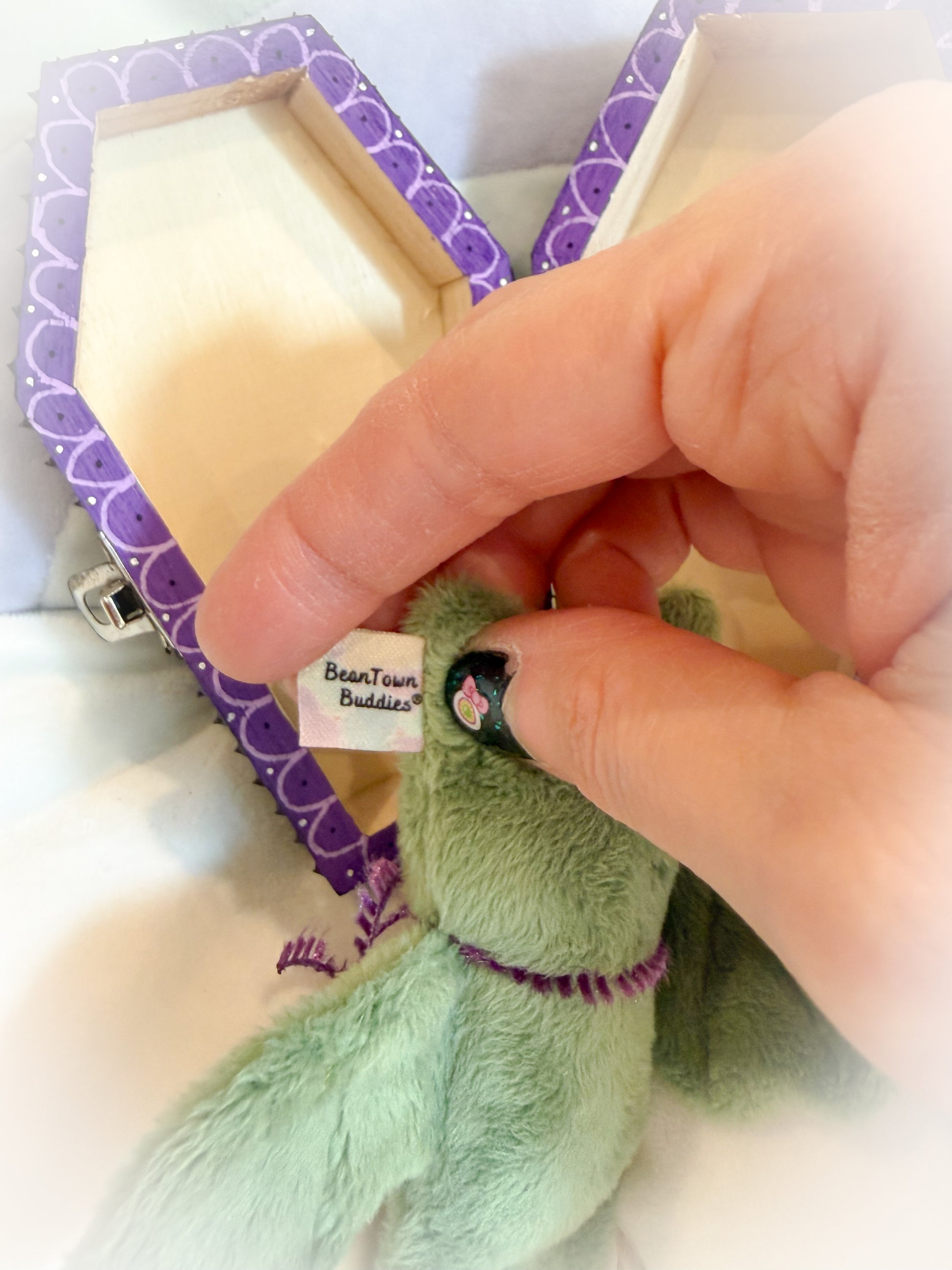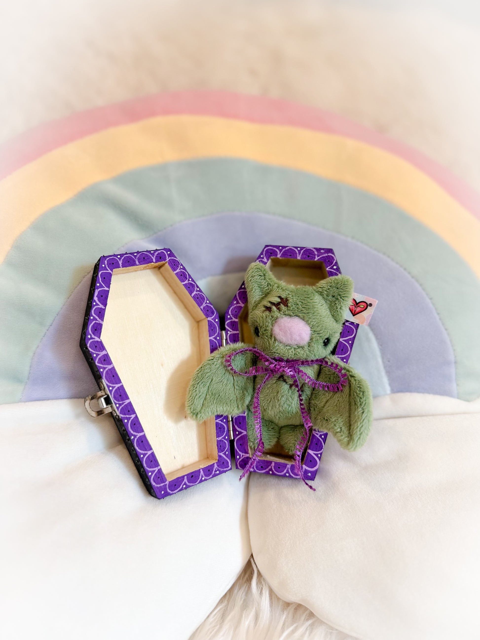 Please welcome the newest additions to BeanTown Buddies® Best Selling bat collection... the Tiny Bats!! This version is our limited edition 1 of 2 Franki style bat, that comes their very own hand painted and embellished wooden coffin. They fit perfectly inside for easy travel, display, & storage. These cuties are brand spanking new for 2025 and have never been made in this smooth style fabric before now so be sure to snag yours today for your collection before they flip, flap, and fly out of the shop!!