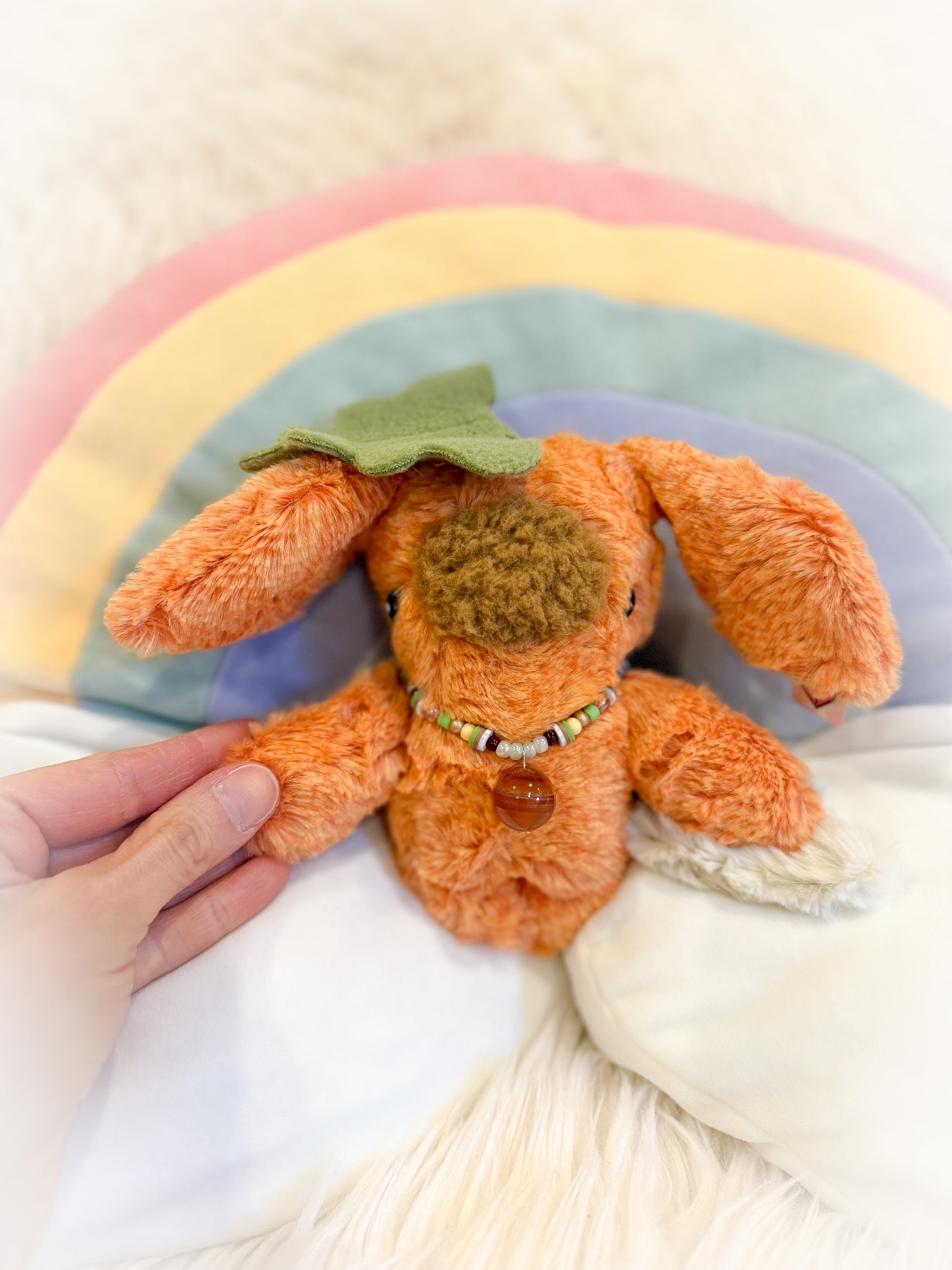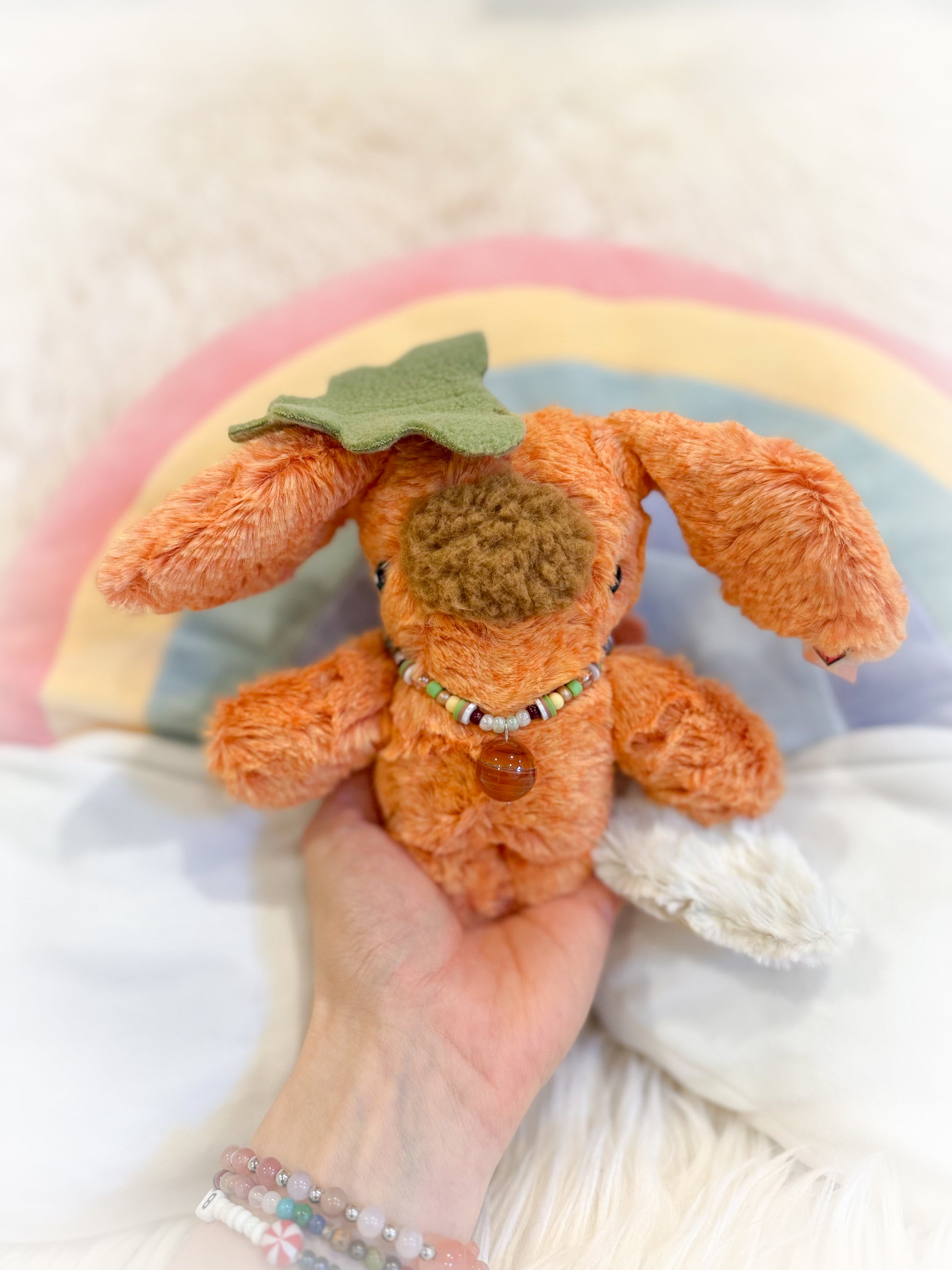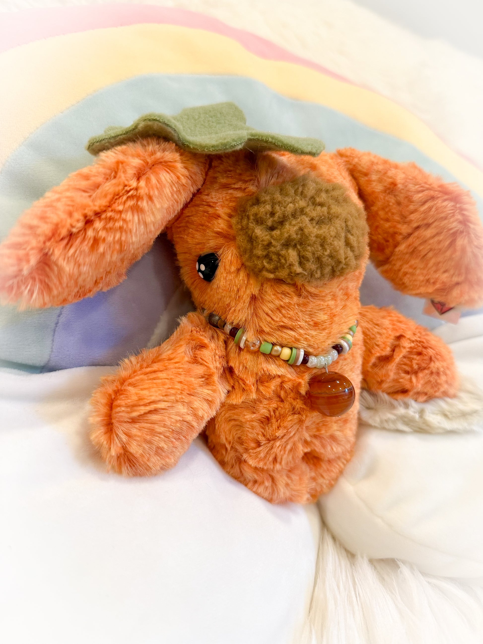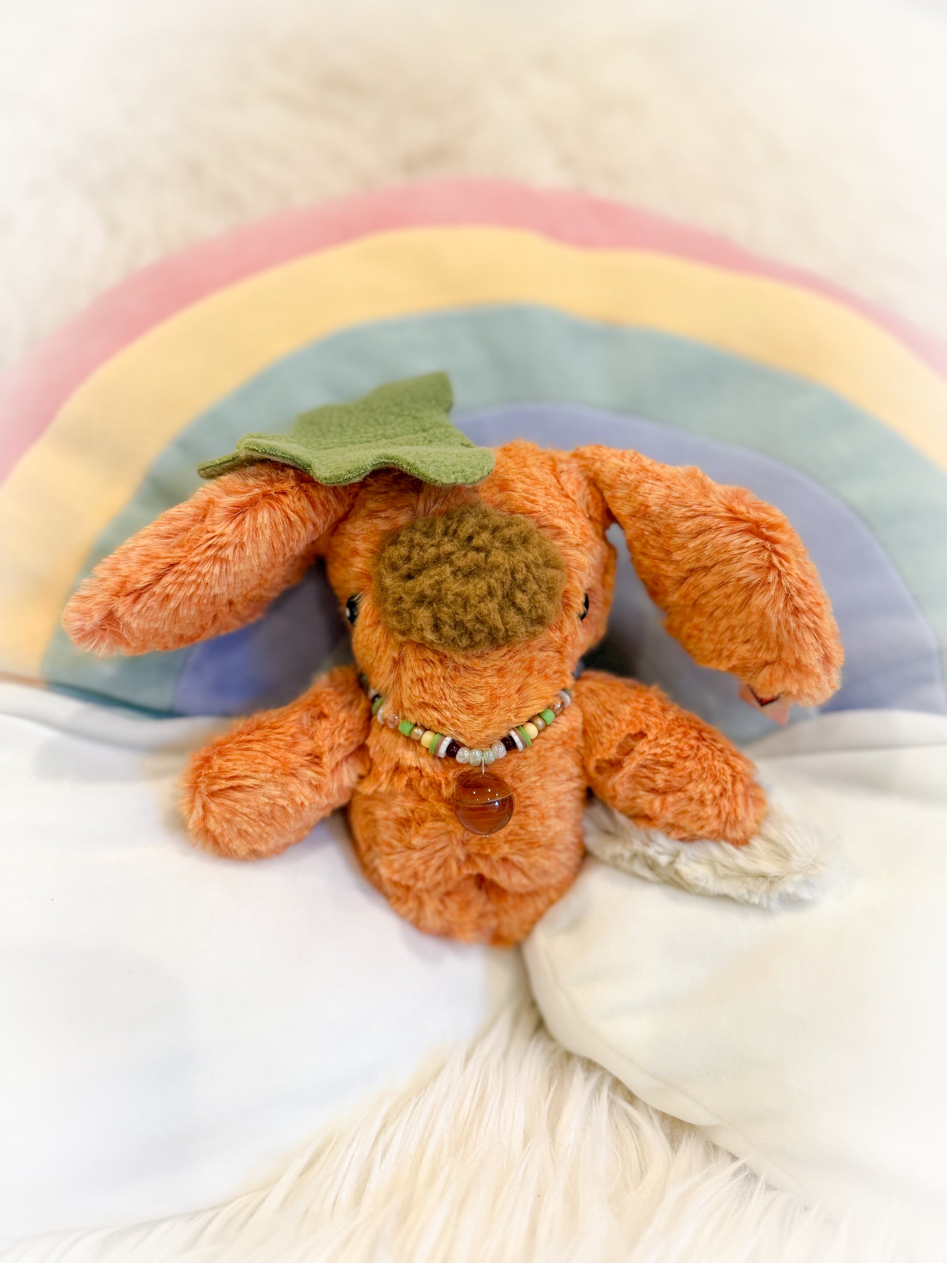Mossimus is the perfect size for easy tag along companionship, they fit nicely into your purse, backpack, picnic basket, diaper bag, fanny pack and of course your arms!! Each features a removable, beaded, charm necklace that is not intended for children under the age of 6. They are weighted with micro glass for that perfect mix of squish and crunch that is wonderful for friends who enjoy having a little extra comfort without being too heavy to easily take along on adventures.