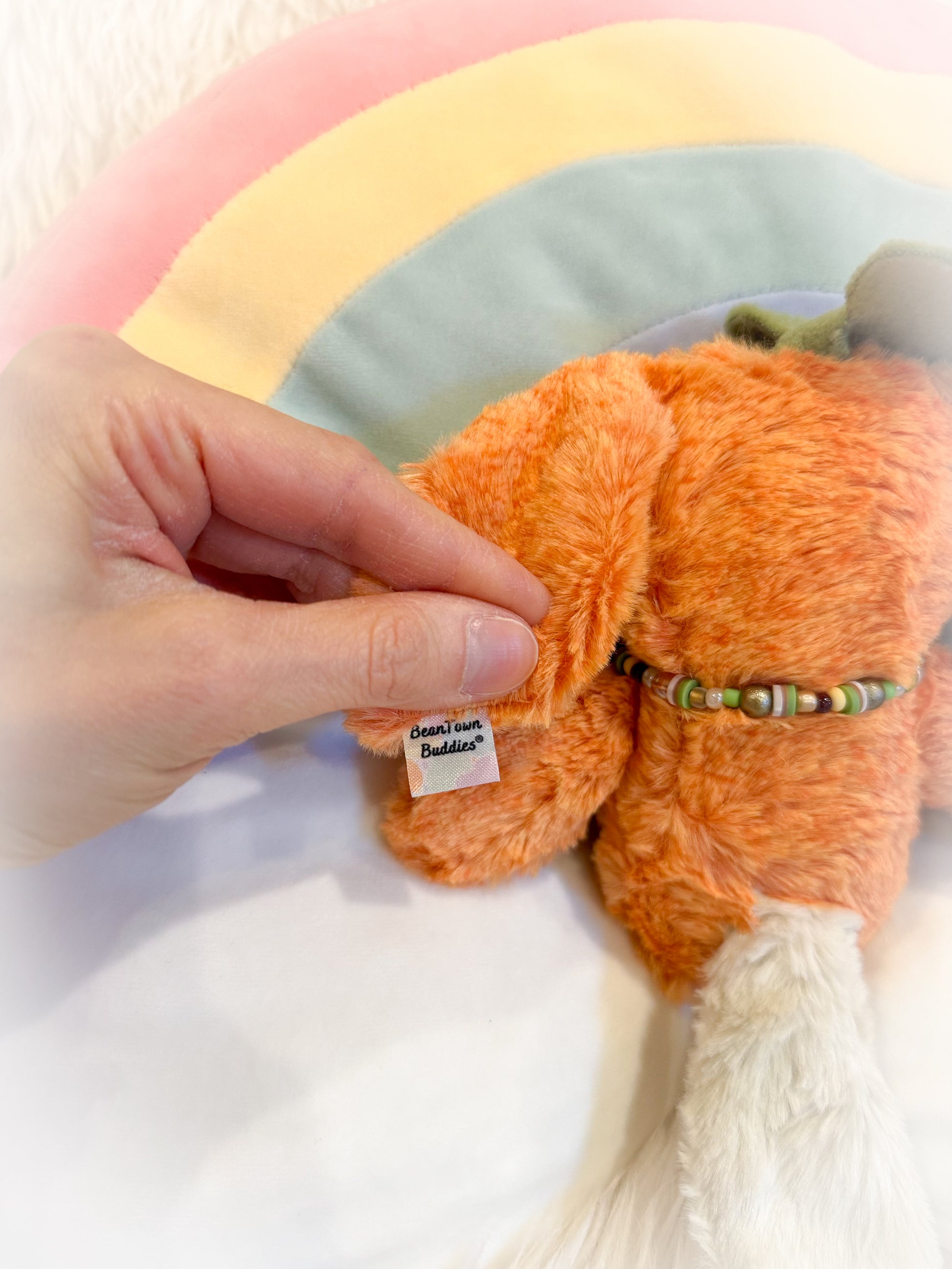 -features an authentic BeanTown Buddies® rainbow silky tag